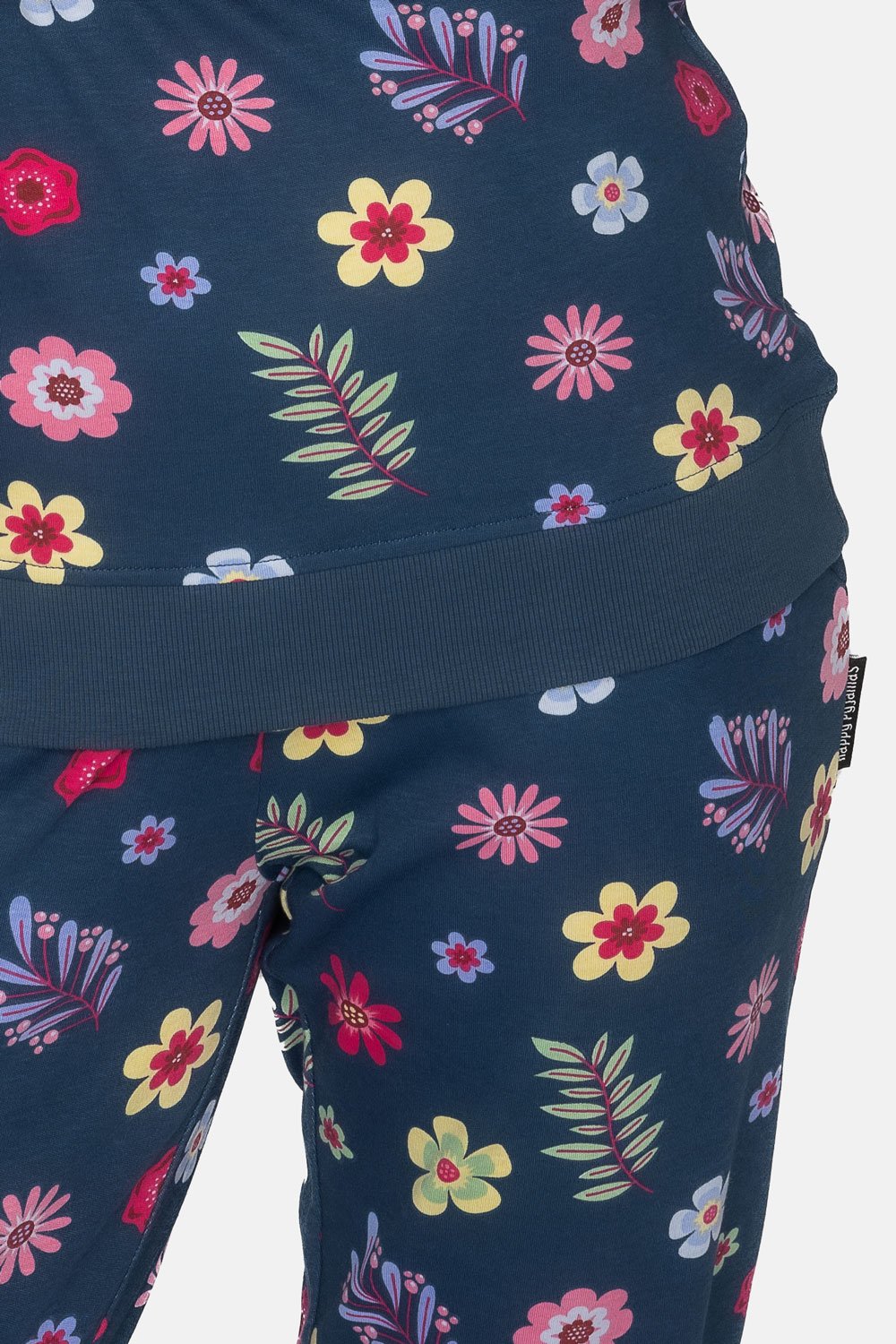 Bringen Sie Gemütlichkeit in Ihr Zuhause mit diesem fröhlichen Pyjama mit Blumendruck! Dieser farbenfrohe Damenpyjama hat einen fröhlichen Look, mit dem Sie die nette Atmosphäre eines schönen Blumenstraußes schaffen können! In Kombination mit der warmen, tiefblauen Farbe ist dies ein stimmungsvoller Pyjama zum Anziehen.