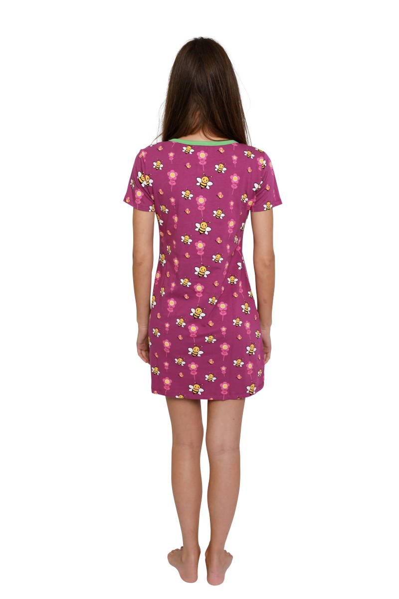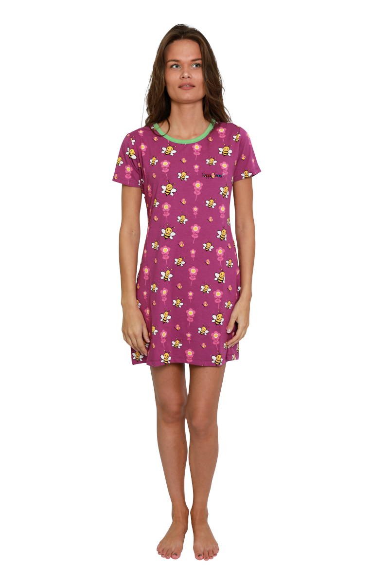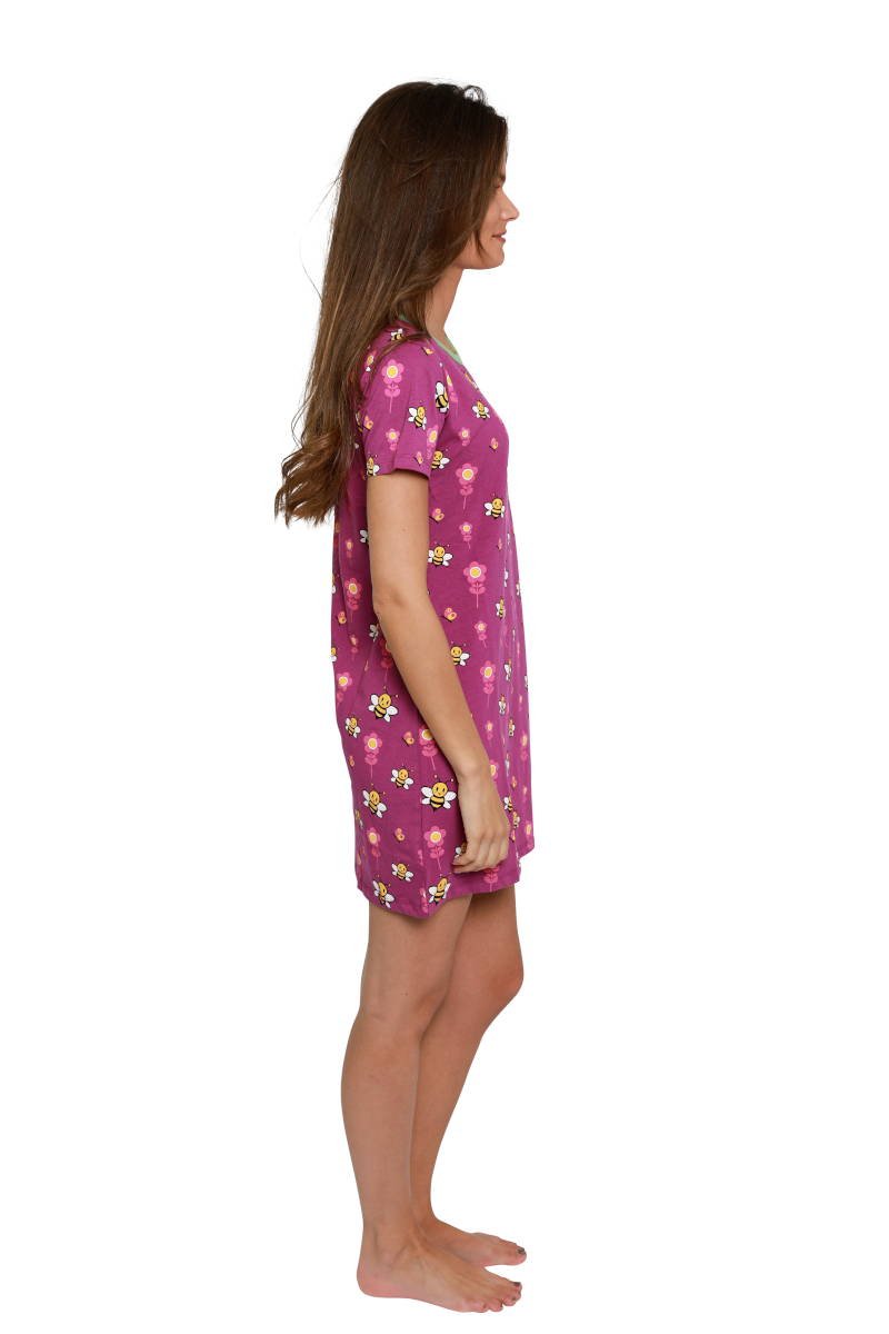 Heerlijk nachthemd dames, makkelijk aan te trekken. Geïllustreerd met grappige bijen en mooie bloemen. De kleur paars is helemaal in, dus waarom geen paars dames nachthemd! De leuke groene rand bij de hals geeft het ontwerp een extra dimensie. Een vrolijke aanvulling op je nachtkleding!