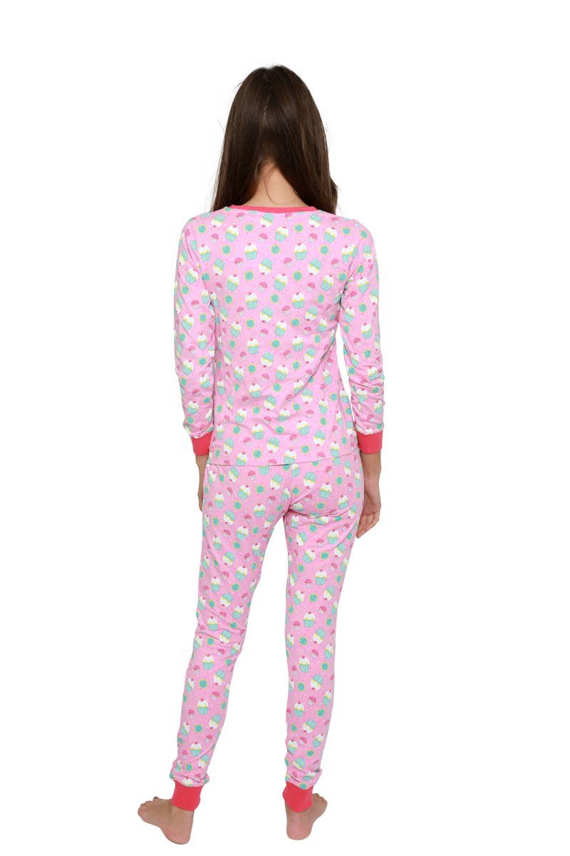 Een mooie roze dames pyjama, gemaakt van lekker zittend katoen, Het is een mooie roze dames pyjama, met verschillende prints erop zoals cupcakes, koekjes, bakdecoratie, enz. Een erg leuke pyjama voor dames en kinderen van 3 tot ongeveer 12 jaar. Met elastiek rondom je middel voor extra draagcomfort. Een mooie roze dames pyjama met een geweldig design! Deze roze dames pyjama Happy Baking is geproduceerd van kwalitatief goed katoen, hij is duurzaam en gaat lang mee. Het katoen is van de juiste dikte, niet te dik en niet te dun. Dit zorgt ervoor dat deze damespyjama jou de juiste warmte geeft, zowel in bed als lekker thuis op de bank. Deze roze dames pyjama is geheel in de stijl van het populaire bakprogramma met o.a. taarten en cupcakes, erg leuk voor dames en meisjes. Je kunt hem ook kopen voor je dochter (tussen de 3 en ongeveer 12 jaar), hoe leuk is het om samen met haar dezelfde pyjama aan te kunnen doen? Dat zal zij ook geweldig vinden, dezelfde roze pyjama als mama.